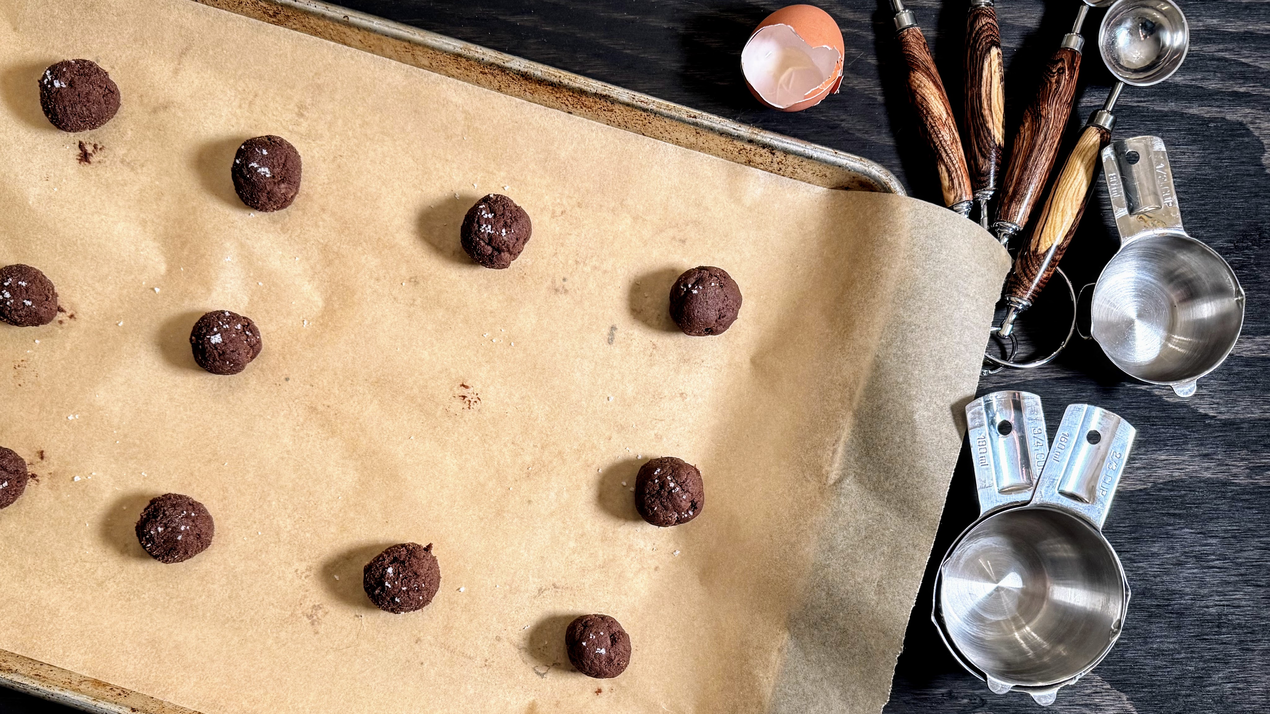 - Roll the cookies into about 24 balls, placing them on prepared cookie sheets (see note)